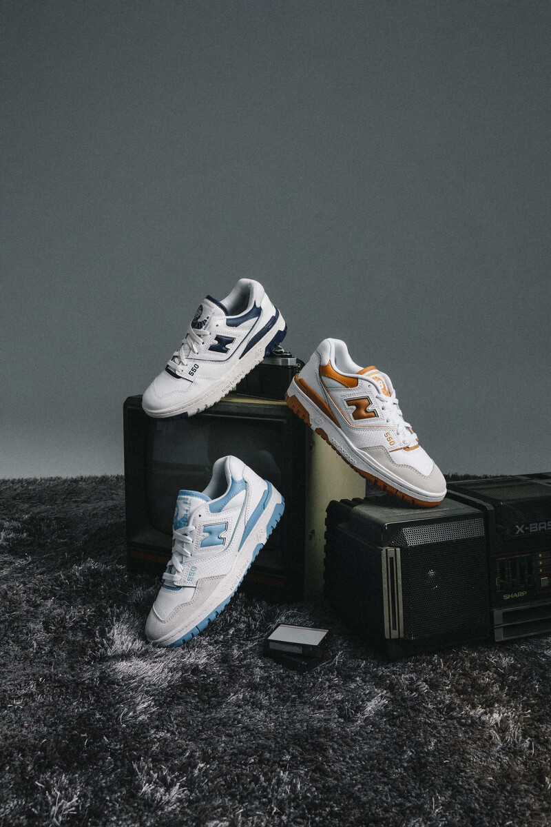 不同于 New Balance 1906R 与 New Balance 2002R,New Balance 550 悄悄成为鞋架上的关注焦点,鞋款有着浓厚的复古篮球鞋轮廓,在 1989 年首度登场后,低筒的球鞋设计打破当时的球鞋框架,带来前卫创新的球鞋风格。