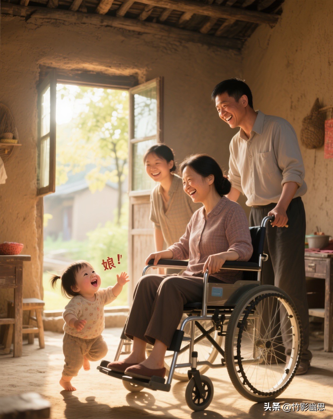 后来村里人听说这事儿,有人说他们傻,自己日子都紧巴还捡个娃,有人说这是老天爷可怜他们。春桃不管这些,每天坐在炕上给念念喂奶、换尿布,建军白天去地里干活,晚上回来就帮着哄孩子,给春桃擦身、按摩。念念会爬的时候,总爱围着春桃的轮椅转,咿咿呀呀地喊“娘”,那声音甜得能把人的心化了。