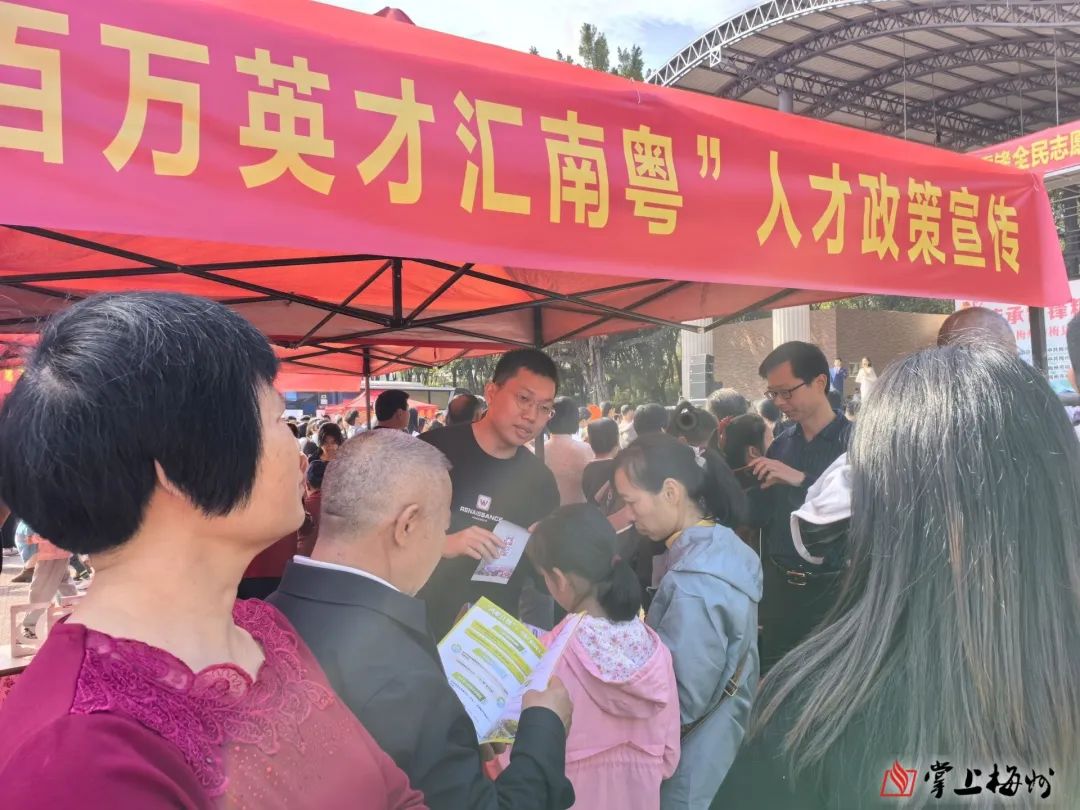 在企业充分展现“求才若渴”诚意的同时,梅县区正全力吹响广纳英才“集结号”。为营造全社会共同参与推进“百万英才汇南粤”行动计划的良好氛围,梅县区通过线上线下相结合、场内场外齐发力的方式,全力奏响广纳英才的“最强音”。线上,梅县区融媒体平台开设“百万英才汇南粤”行动计划宣传专栏,集中推送人才政策、优质岗位需求,打造人才活动宣传视频号,不断扩大社会知晓率;线下,梅县区近期开展了“百万英才汇南粤”行动计划专场宣讲、人才政策宣传进高铁站、“智汇梅县·人才沙龙”等系列活动。