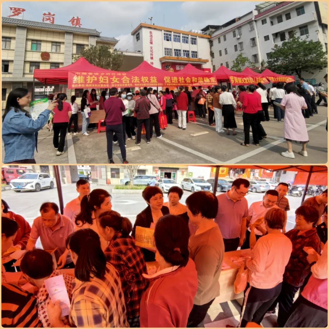 市妇联、兴宁妇联、省妇女维权站(梅州站)联合罗岗镇普法办、民政、消防、卫生院等部门在罗岗镇圩镇举办巾帼普法宣传活动。现场通过设置宣传咨询台、悬挂横幅标语、实物展示、知识讲解、发放宣传册和宣传品等形式,耐心细致地为群众普及妇女权益保障、未成年人保护、禁毒、法律援助、低保政策、消防安全、女性健康等方面知识,面对面解答群众提问,让维权普法更“接地气”、宣传“零距离”。同时,还医疗志愿服务队为群众提供健康咨询和义诊服务。